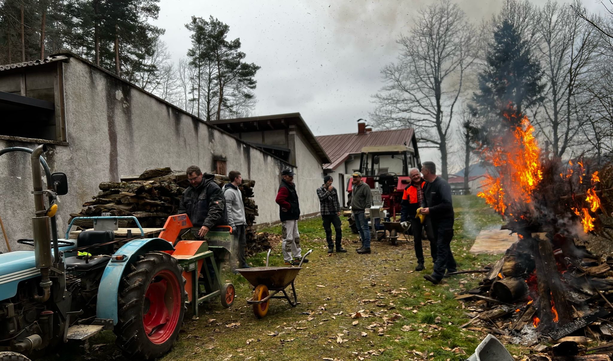 Mit 2 Traktoren, mit angebrachten Sägen wurden insgesammt ca. 16 Ster Holz gesägt und von den Mitgliedern in den Stadel gesetzt. Dabei wurde gleichzeitig noch einiges an altem Material aussortiert und entsorgt.